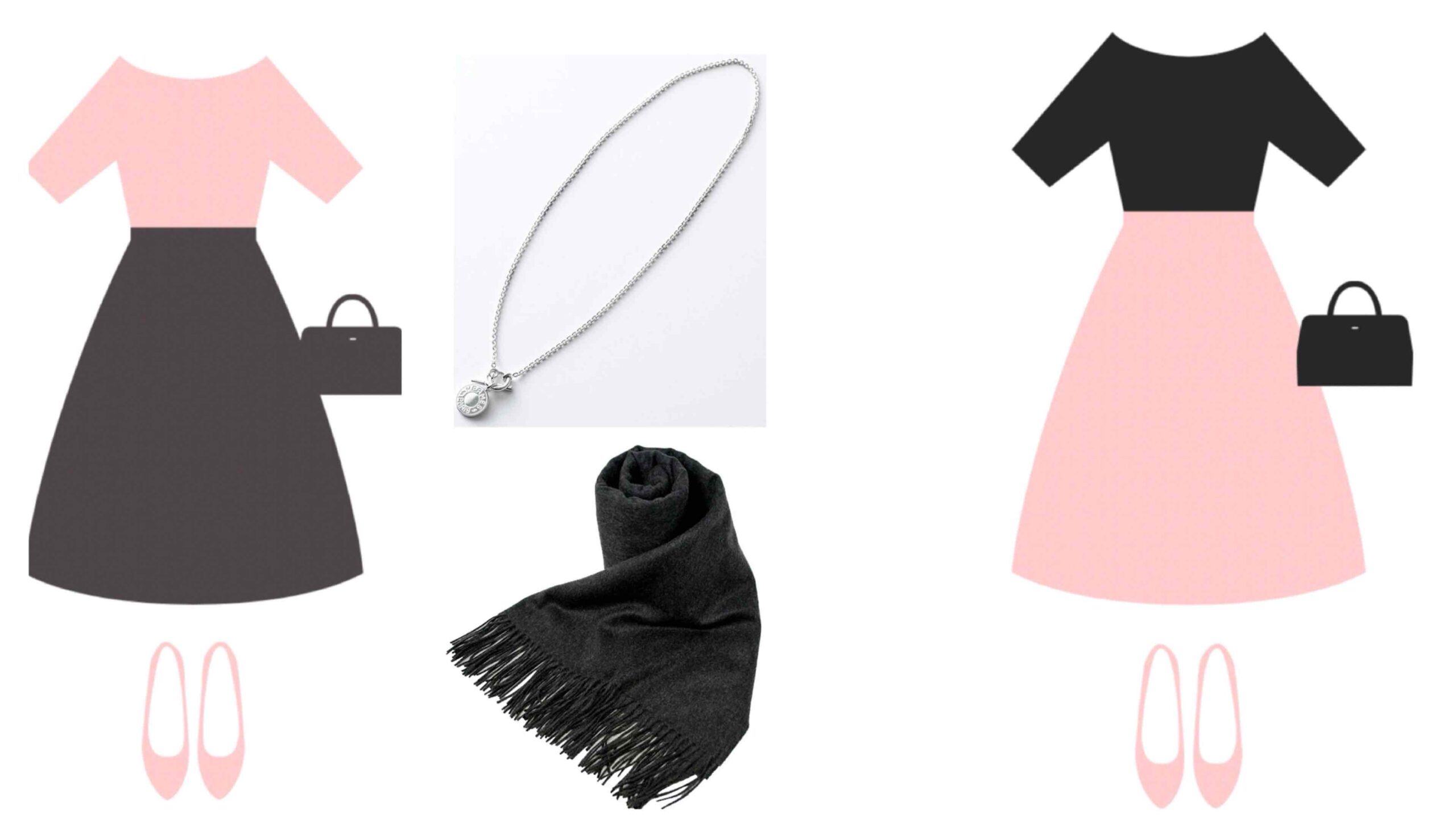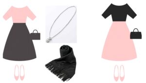 王道の黒、純白、チャコールグレーのコントラスト配色を意識して、シルバーアクセサリーも上手く使って下さい。