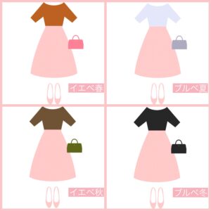 イエベ秋タイプはソフトなトーンがお得意な色白のミューテッドタイプ(1stイエベ秋、2ndブルベ夏)であればお似合いになりますよ!