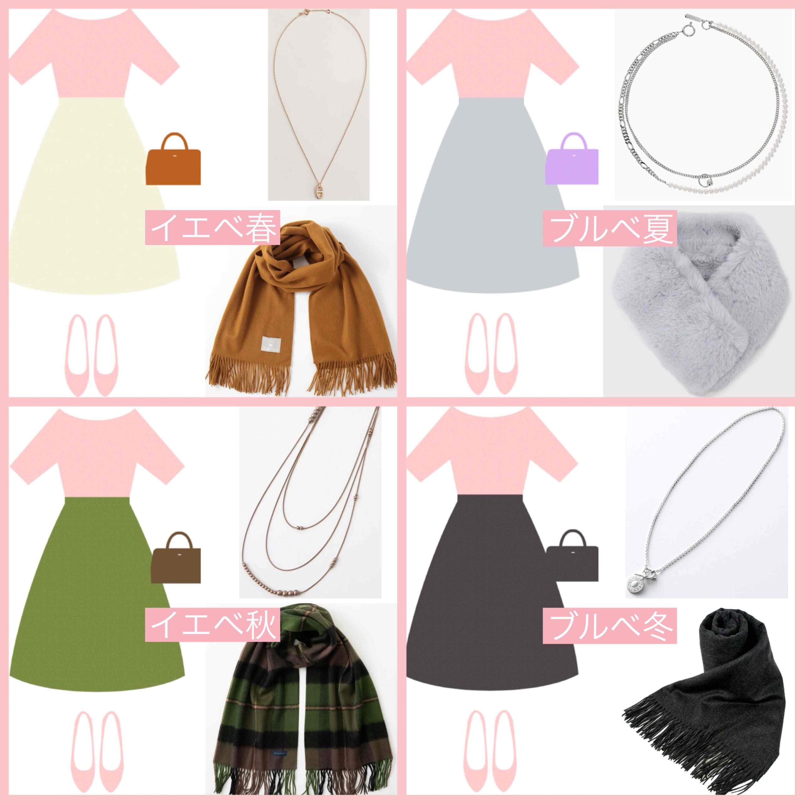 私と同じライトサマータイプもお似合いになりますが、黄みが気になる方はシルバーやパールなどのアクセサリー、お得意なカラーでカバーして下さいね。
